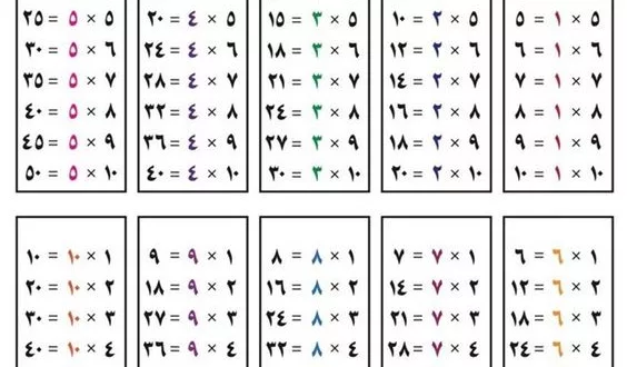 تحميل جدول الضرب عربي ملون واضح للأطفال.. مع دليل الحفظ