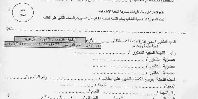 تحميل طلب تحويل لجنة طبية لطلاب الثانوية الأزهرية pdf| تأجيل الإمتحان بعذر طبي