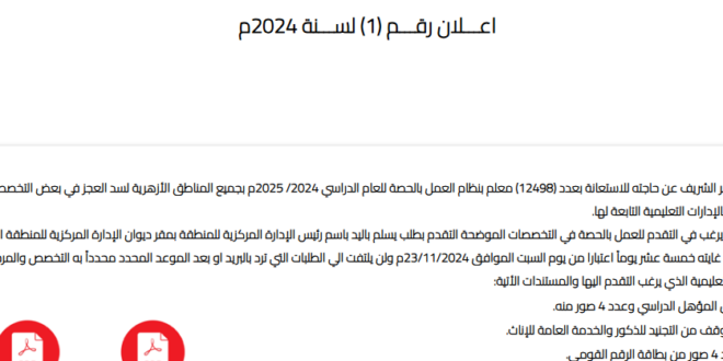 مرتبات معلمي الأزهر بالحصة 2024/ 2025 أبو سدرة 19 نوفمبر، 2024 أخبار التعليم اضف تعليق 231 زيارة شاركها Facebook Twitter LinkedIn Pinterest