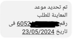 ما هي رسالة EIS تم تحديد موعد المعاينة للطلب رقم ؟